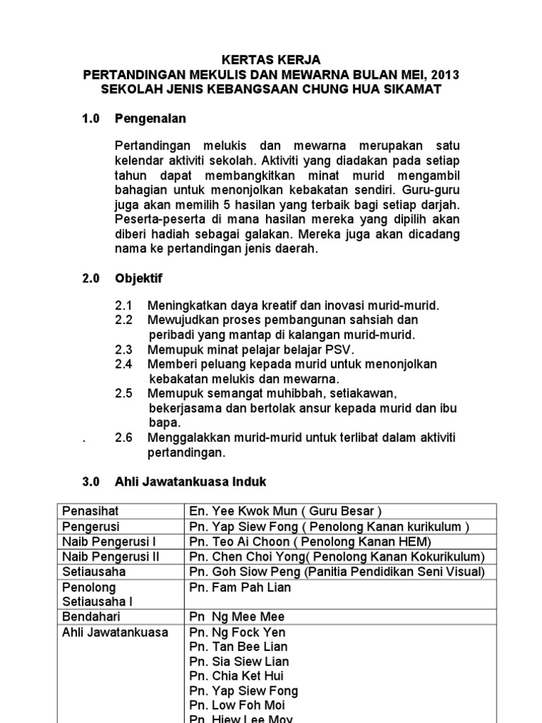 Kertas kerja pertandingan mekulis dan mewarna bulan mei 2013 sekolah jenis kebangsaan chung hua sikamat 10 Pengenalan Pertandingan melukis dan mewarna merupakan satu kelendar aktiviti sekolah. Picture 124322544 kertas kerja pertandingan melukis dan mewarna doc document ini dipetik dari pemilik berikut. Rogayah Bt Dollah.